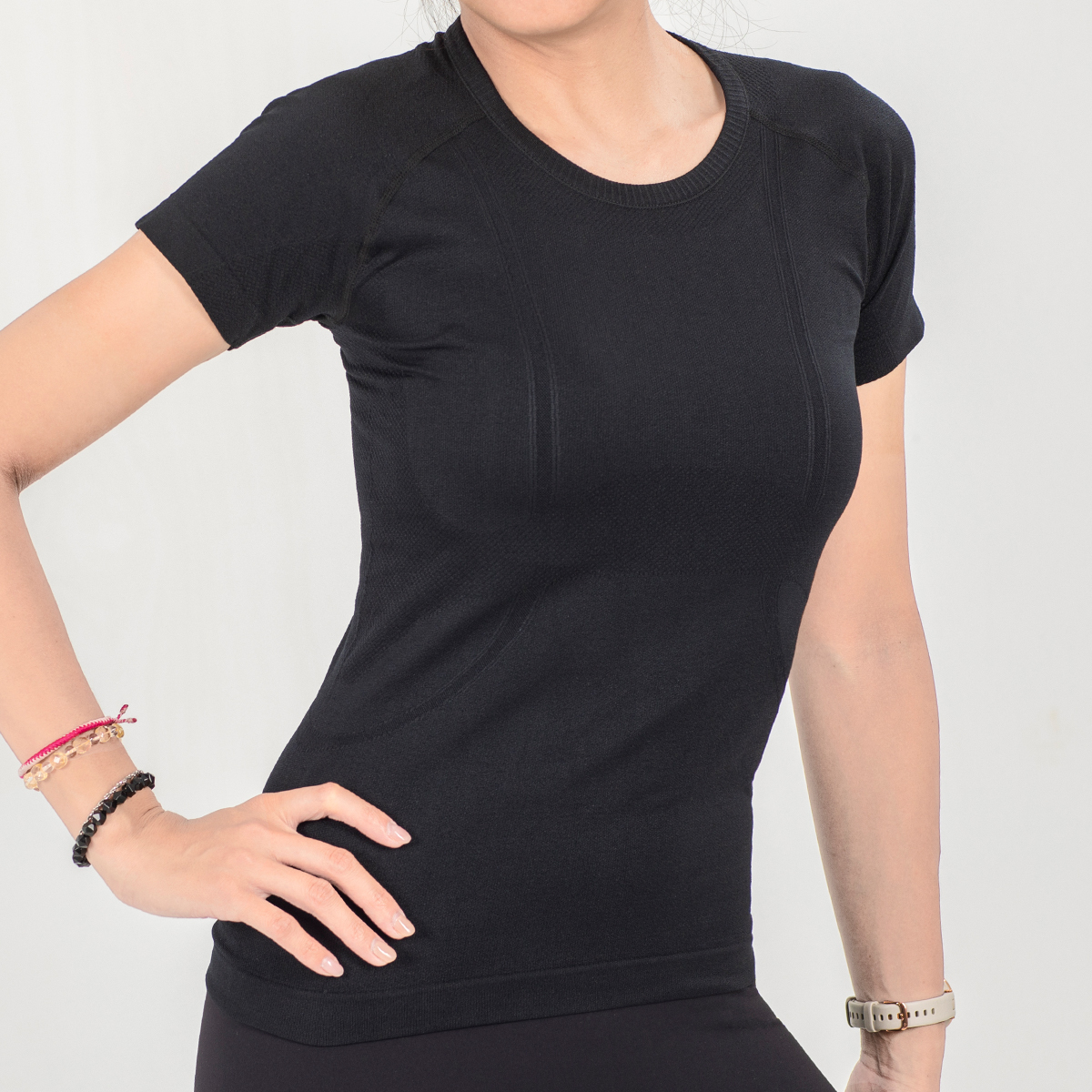 ● One-piece cut short sleeves.