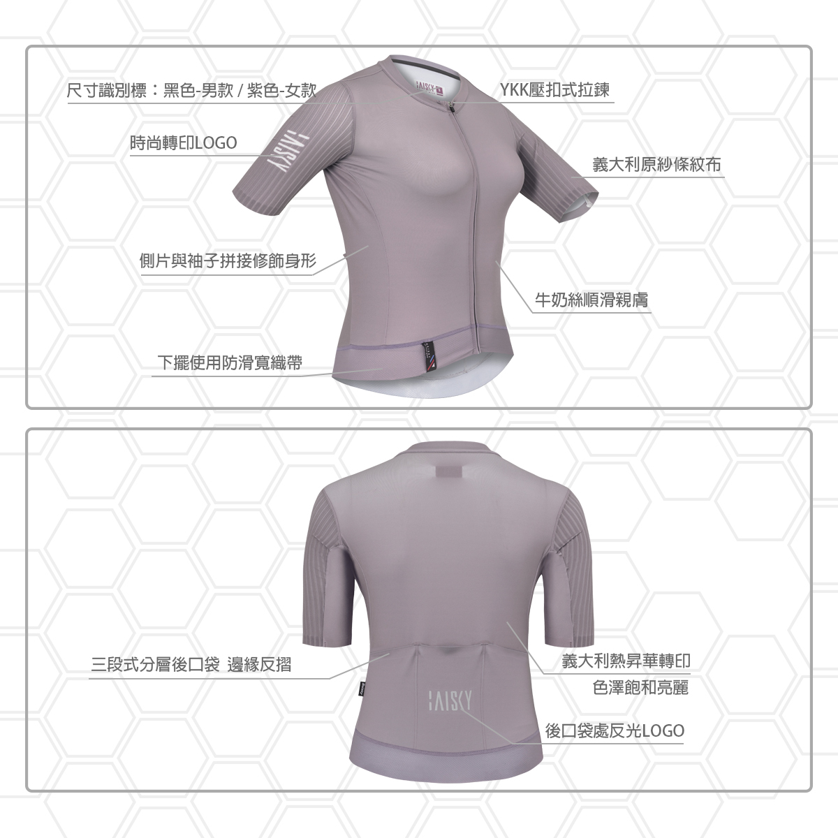 ● 袖子採義大利布料一體成形,袖口俐落反摺壓膠