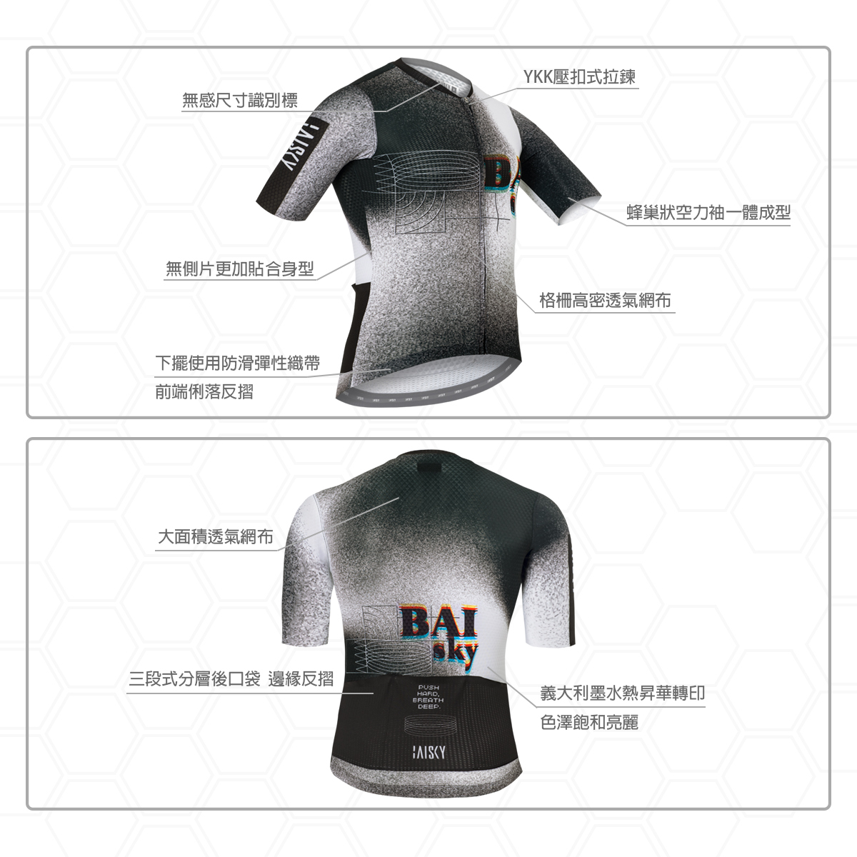 ● 袖子採用透氣蜂巢梭織布,空力一體成型設計