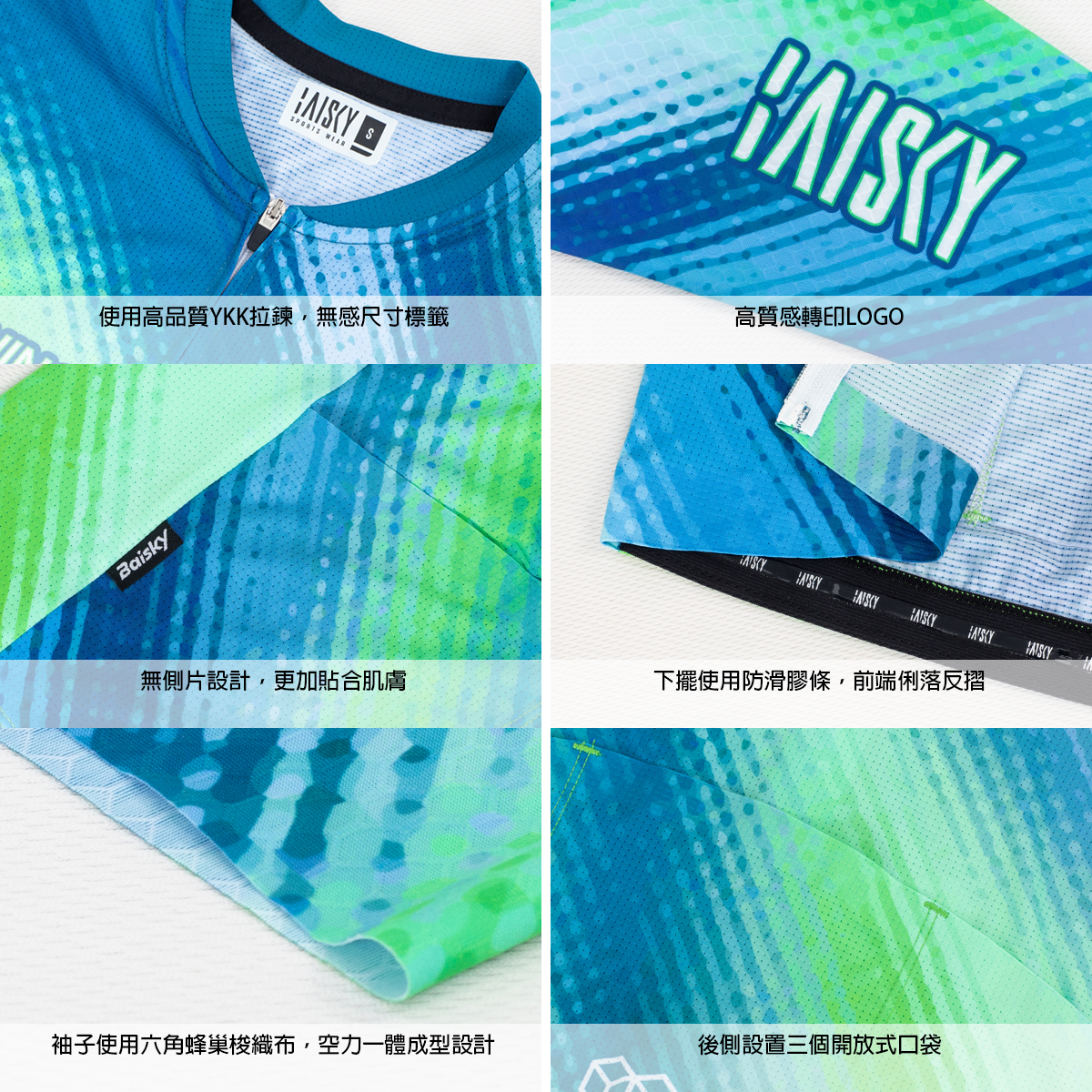 ● 袖子使用六角蜂巢梭織布,空力一體成型設計