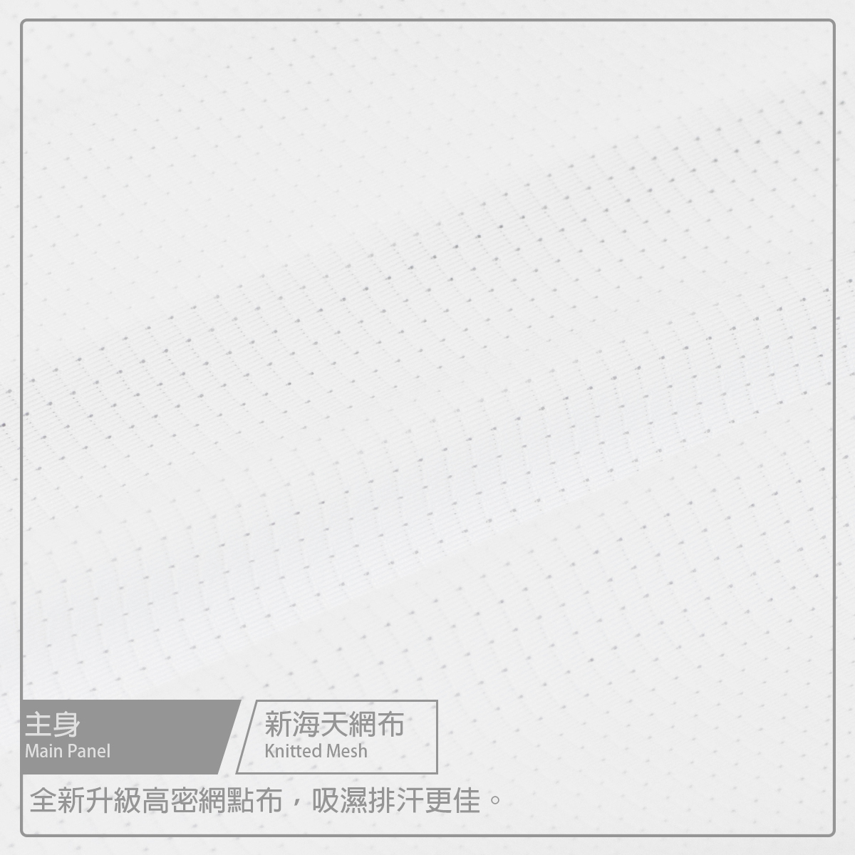 ● 袖子使用六角蜂巢梭織布,空力一體成型設計,側邊網布與袖子合身拼接