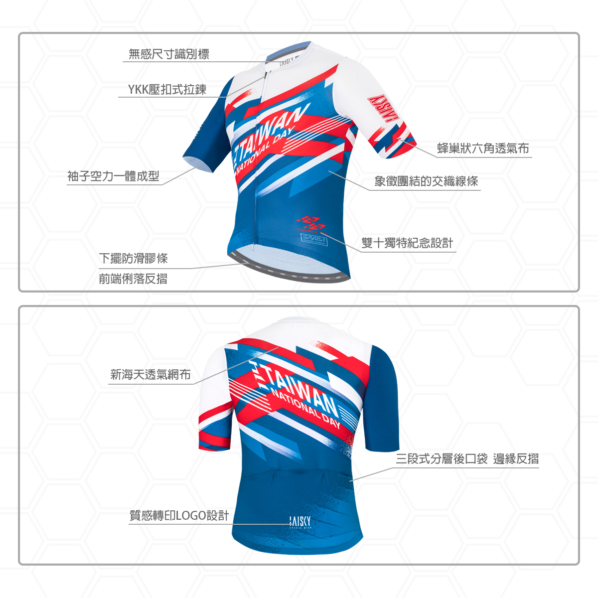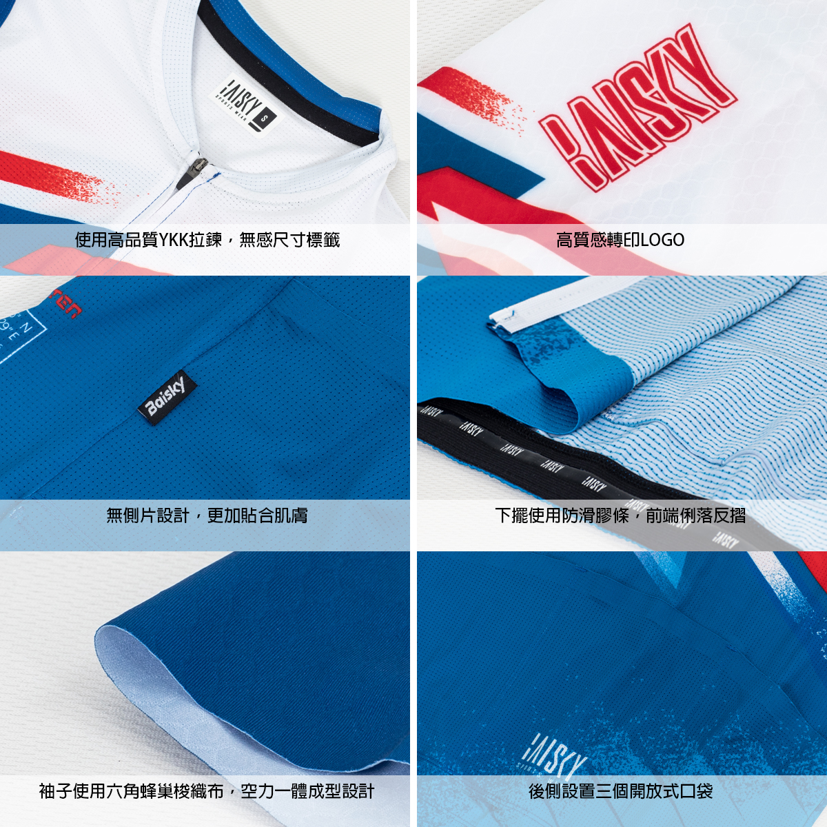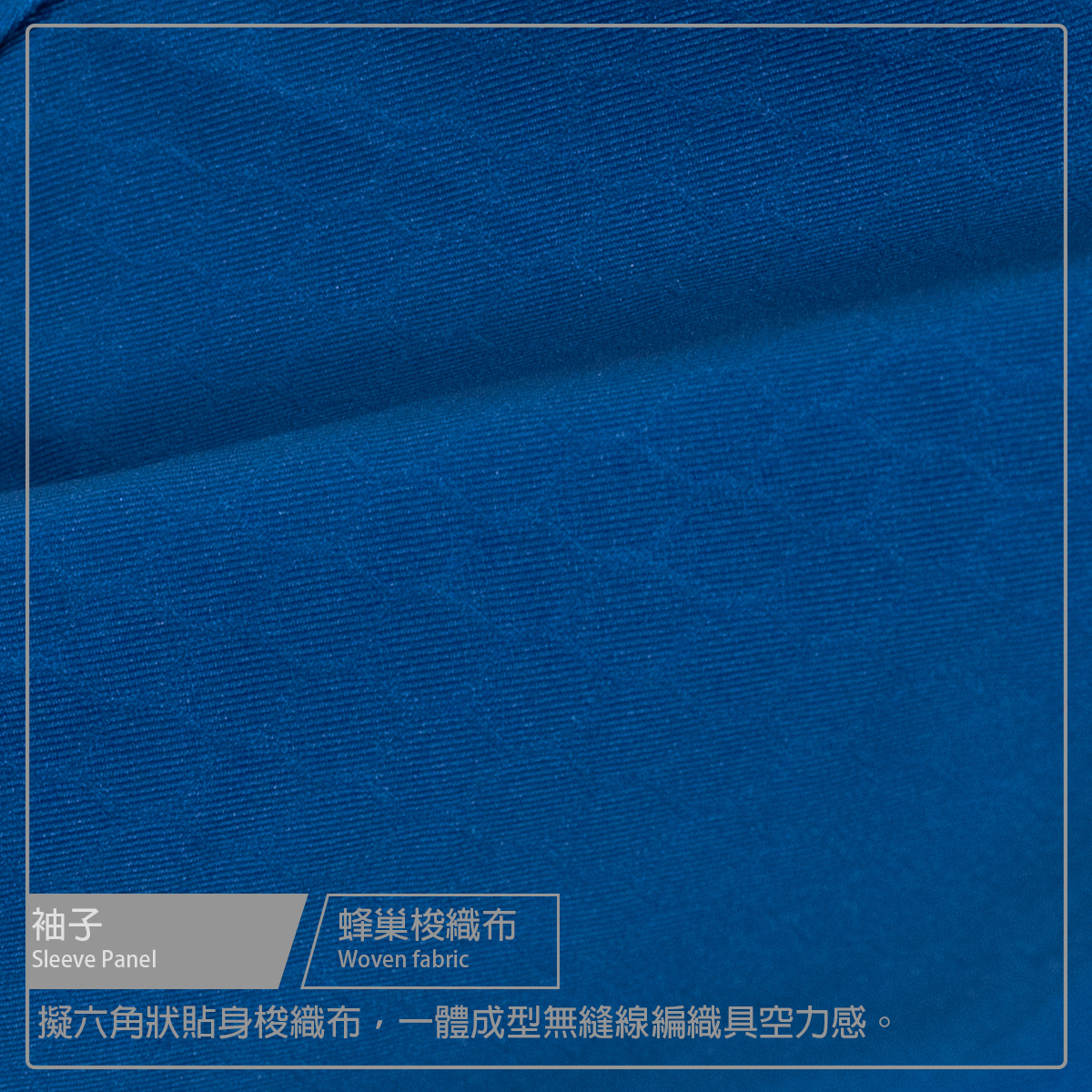 ● 袖子使用六角蜂巢梭織布,空力一體成型設計