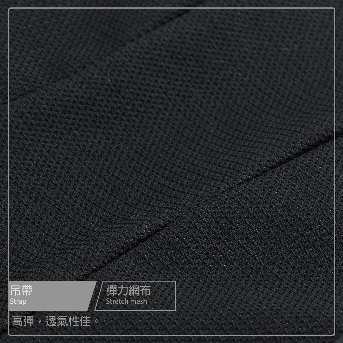 ● 全黑彈力織帶包邊,透氣與支撐性佳
