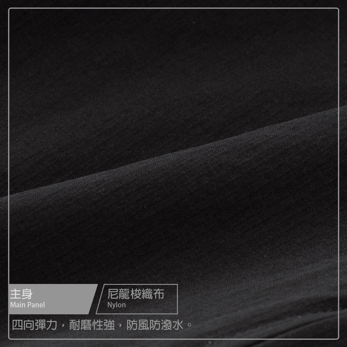 主身:彈性絨毛布(78%滌綸+22%萊卡) / 尼龍梭織布(92%尼龍+8%萊卡)