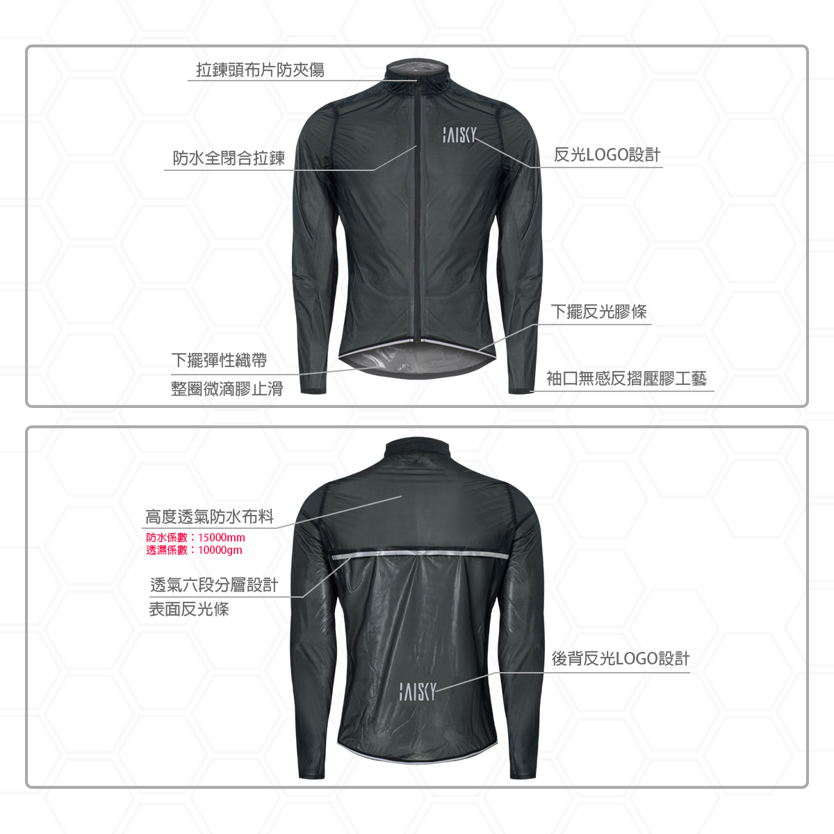 ● 高度透氣防水布料,防水係數:15000mm/透濕係數:10000gm