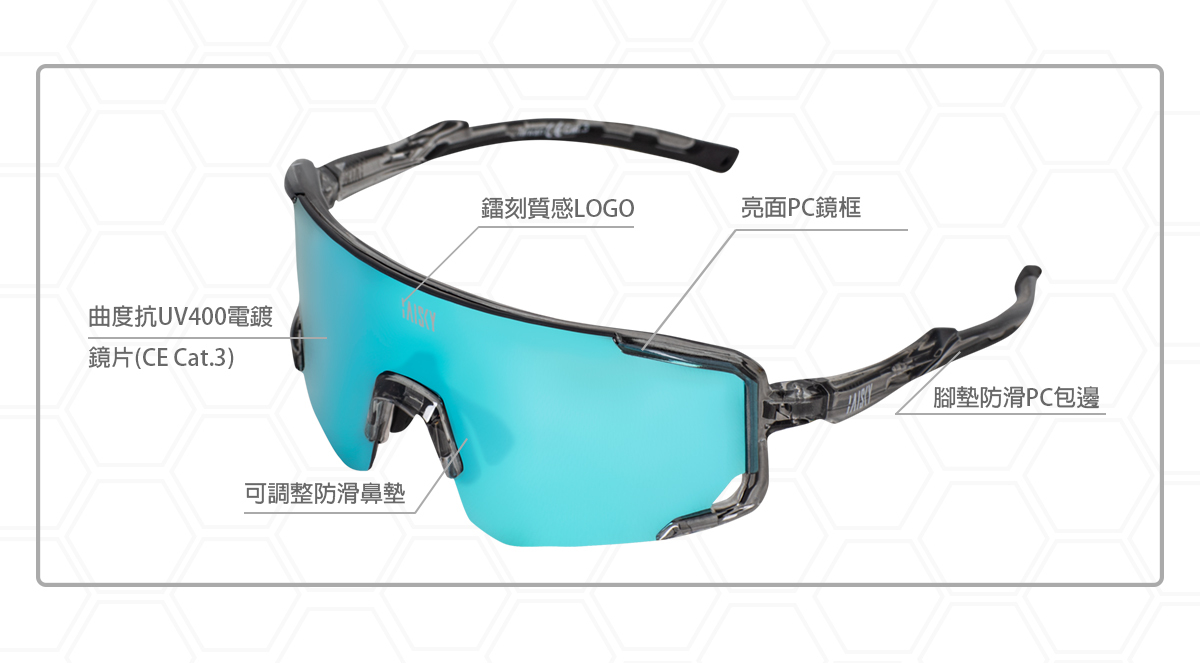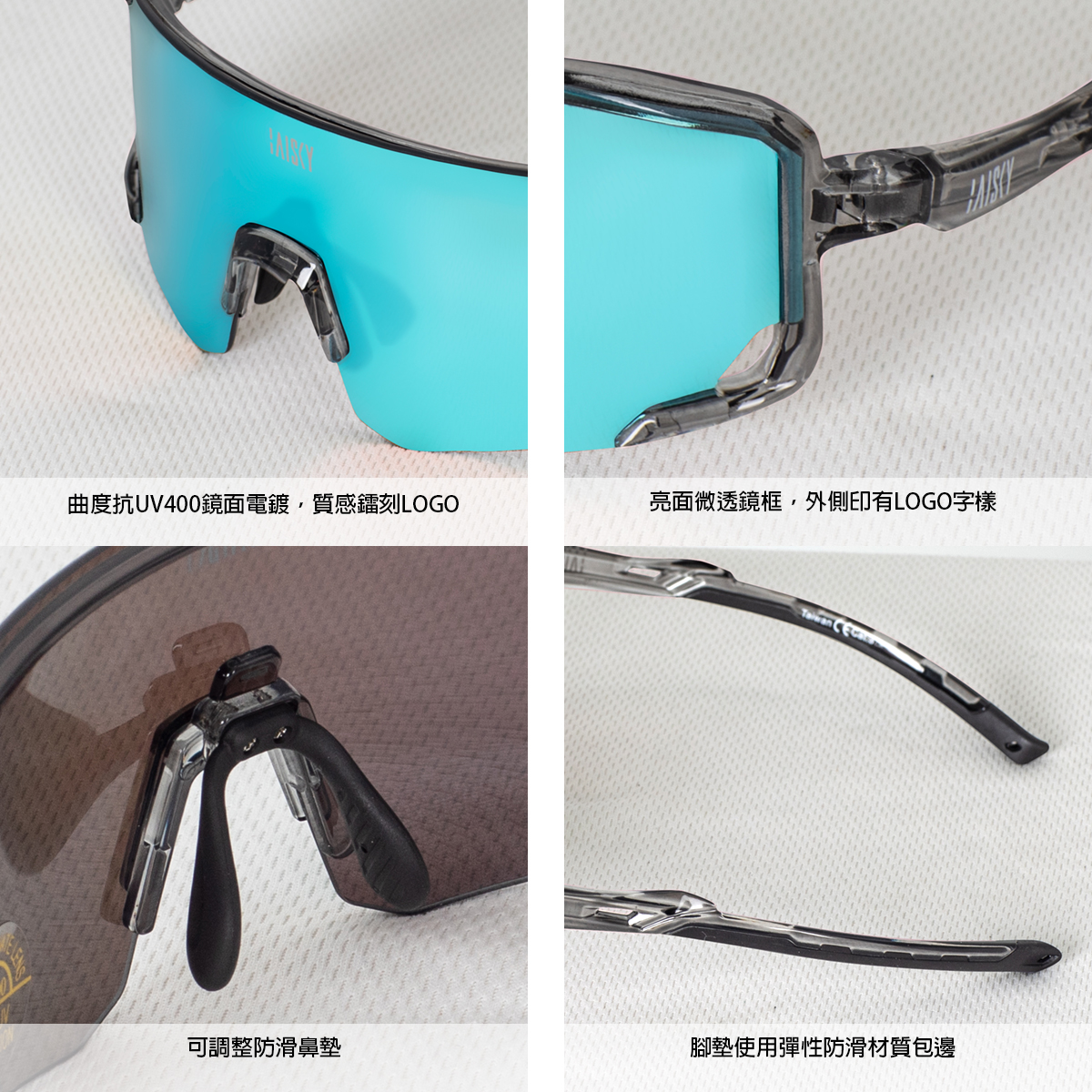 ● 曲度抗UV400鏡面,質感鐳刻LOGO
