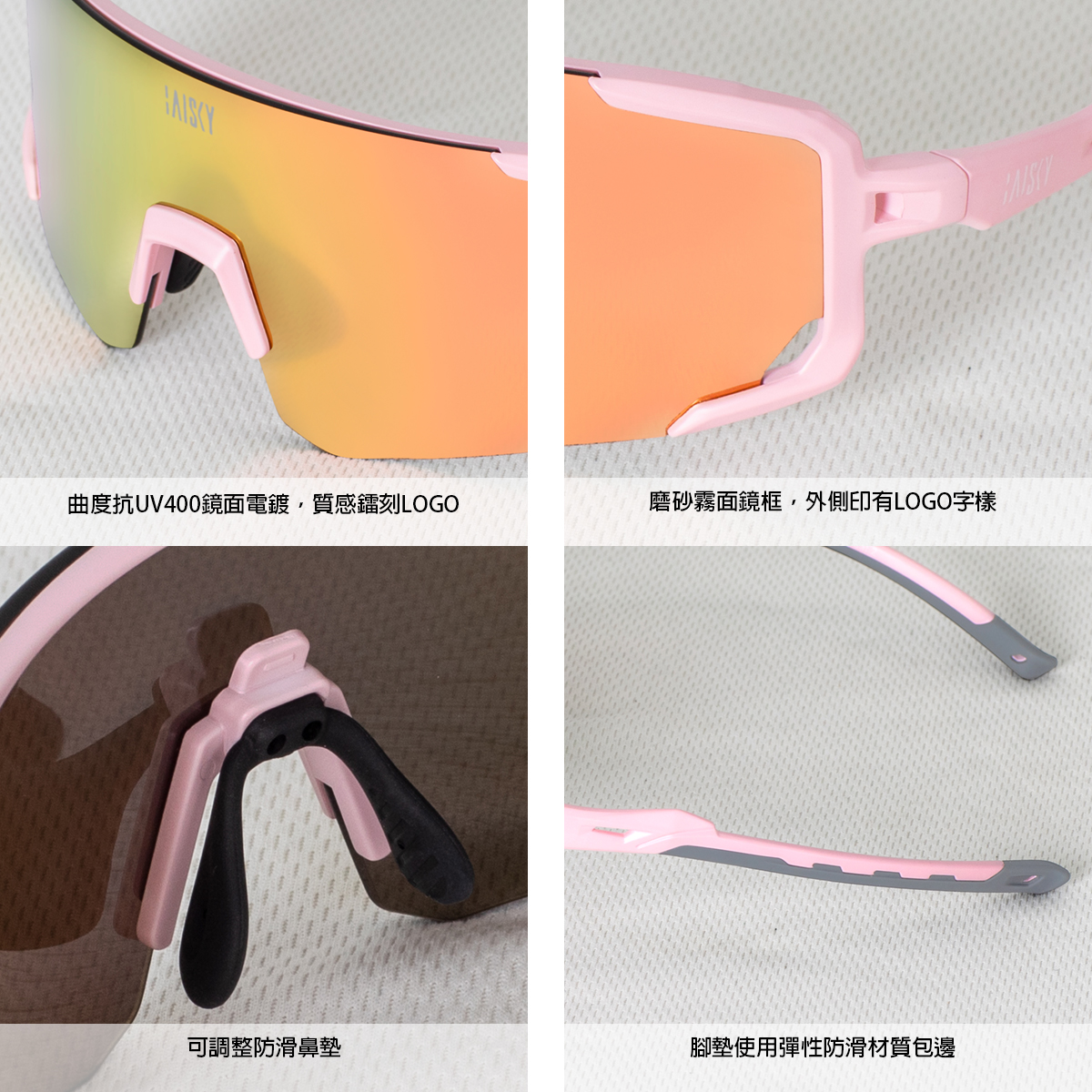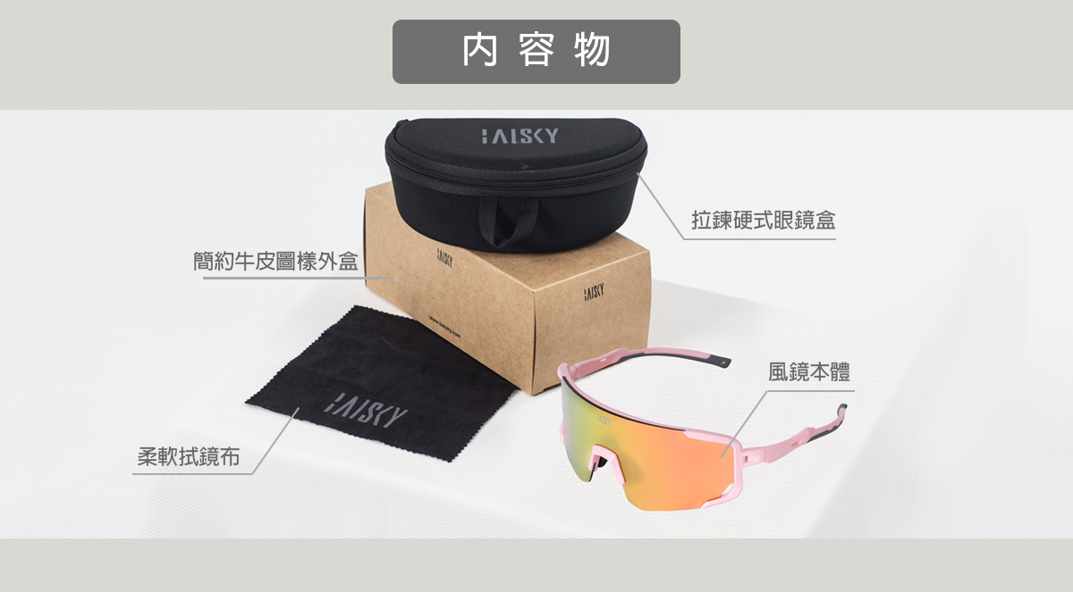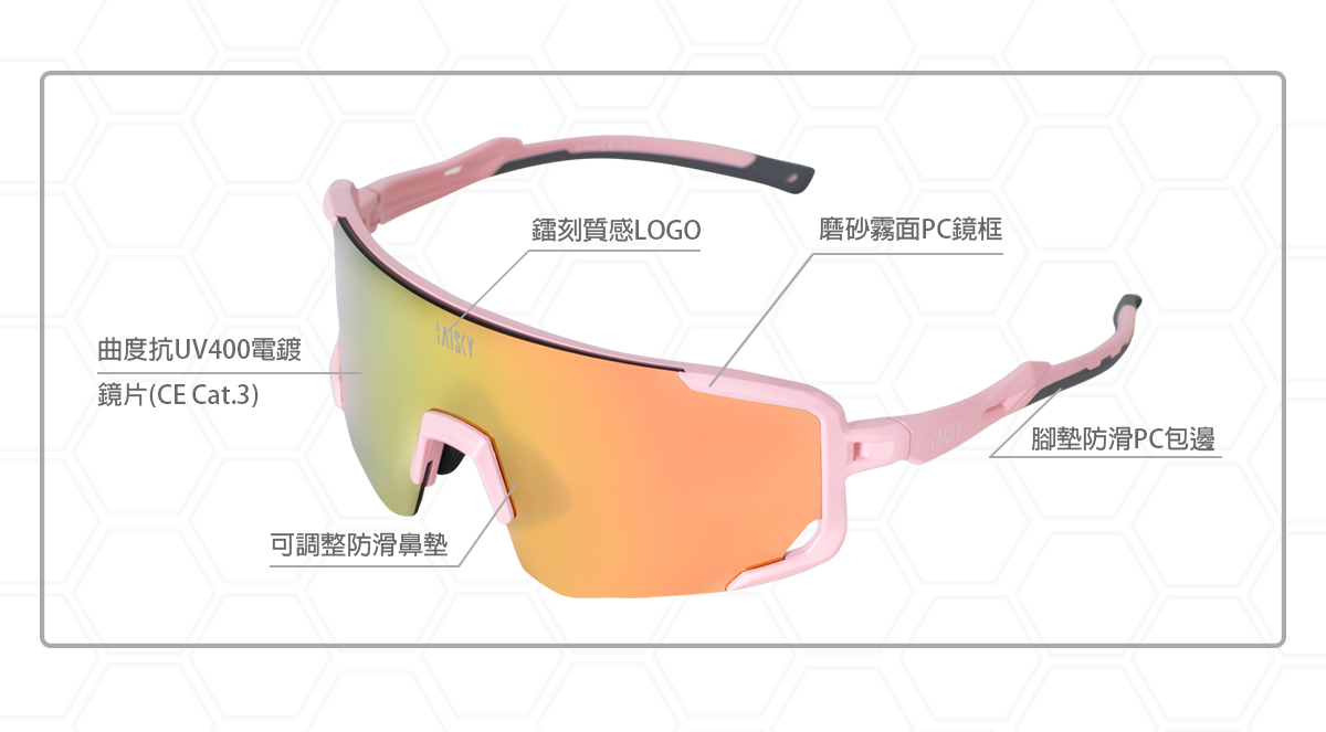 ● 曲度抗UV400鏡面,質感鐳刻LOGO