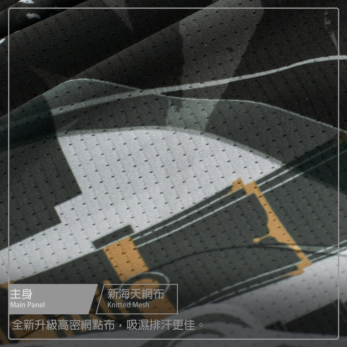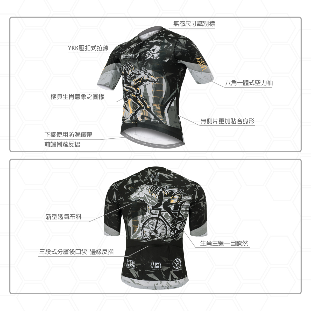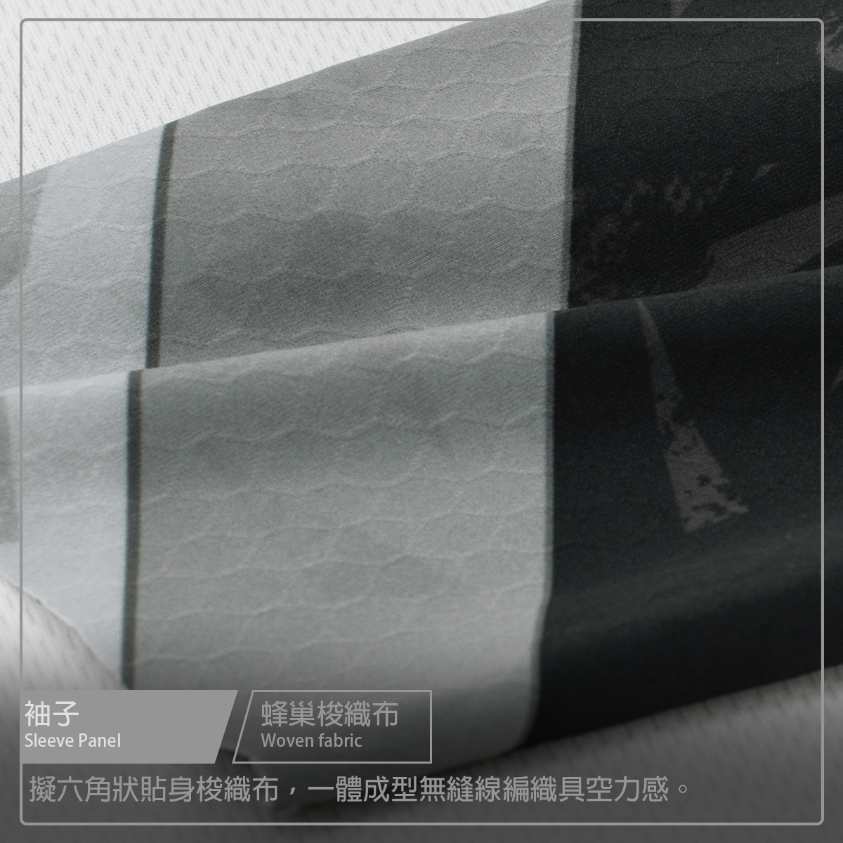 ● 袖子使用六角蜂巢梭織布,空力一體成型設計