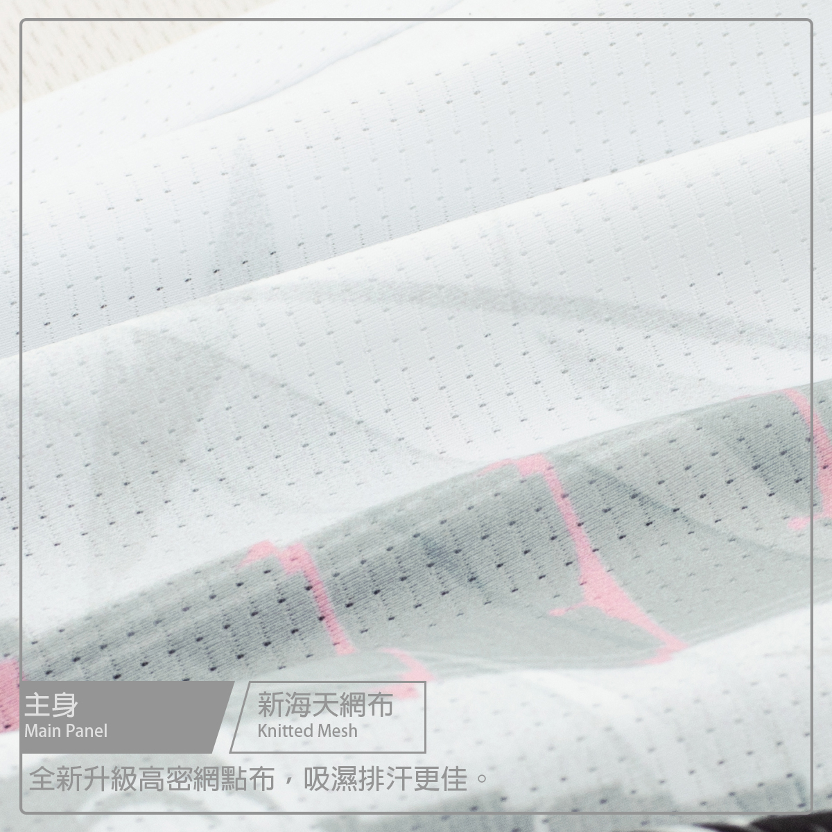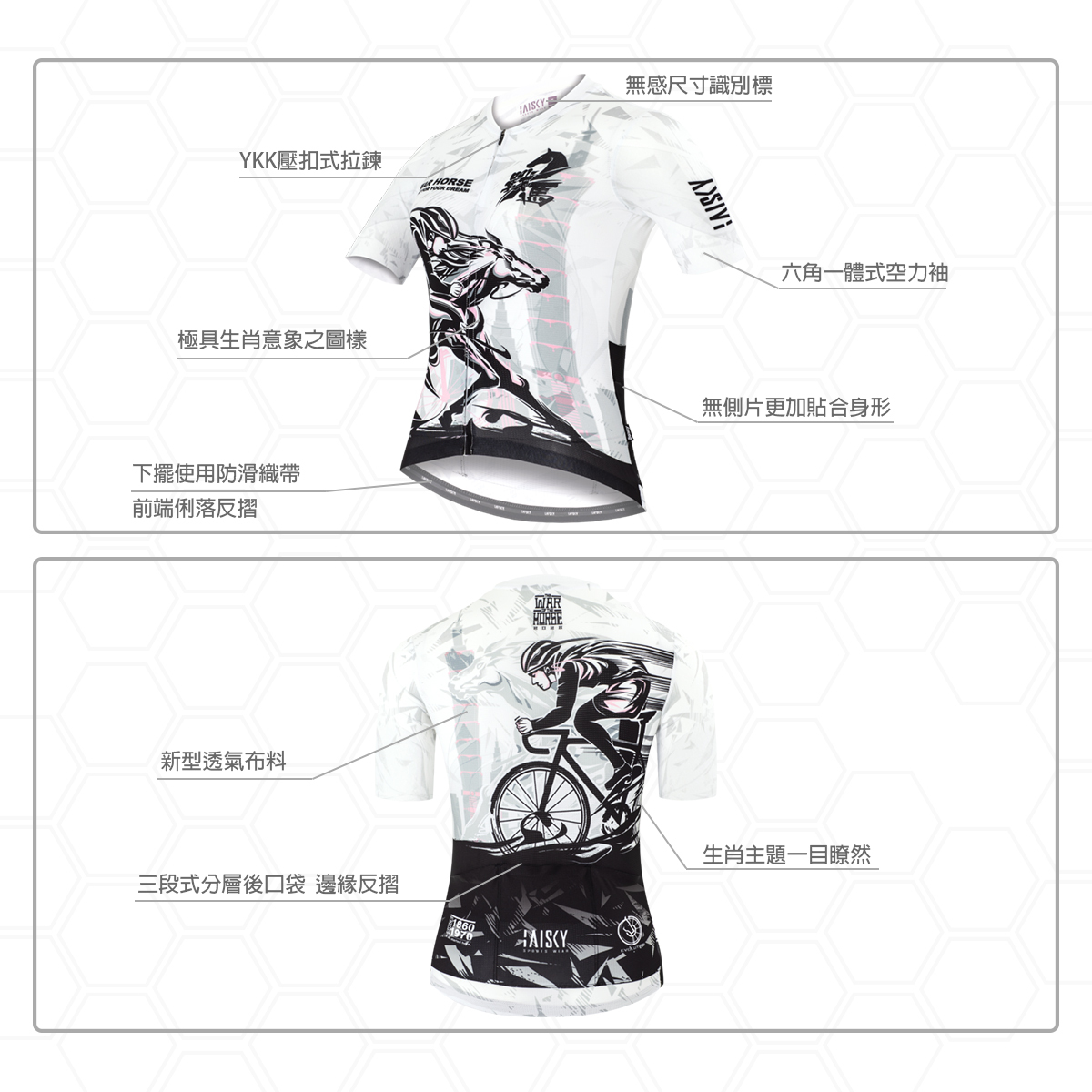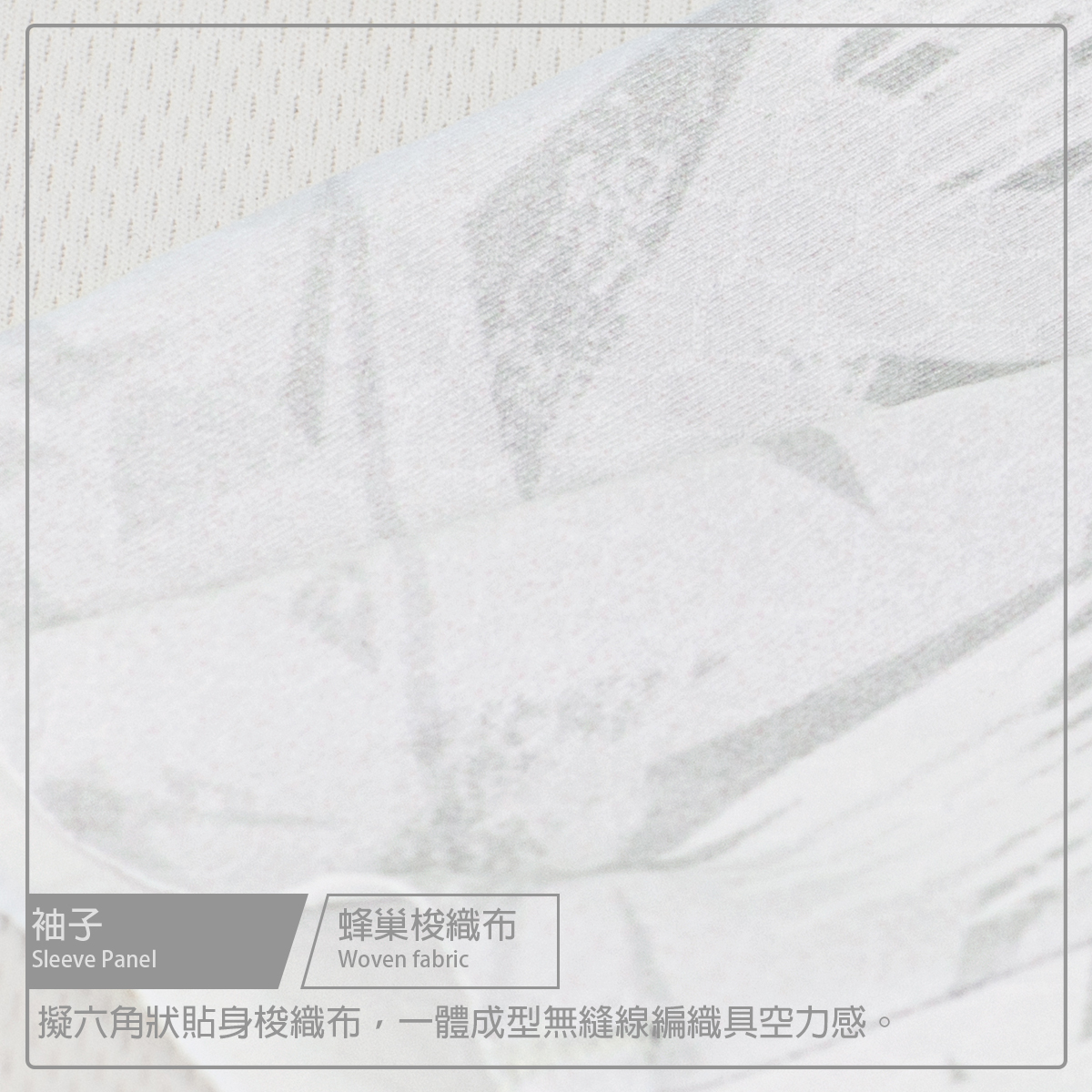 ● 袖子使用六角蜂巢梭織布,空力一體成型設計