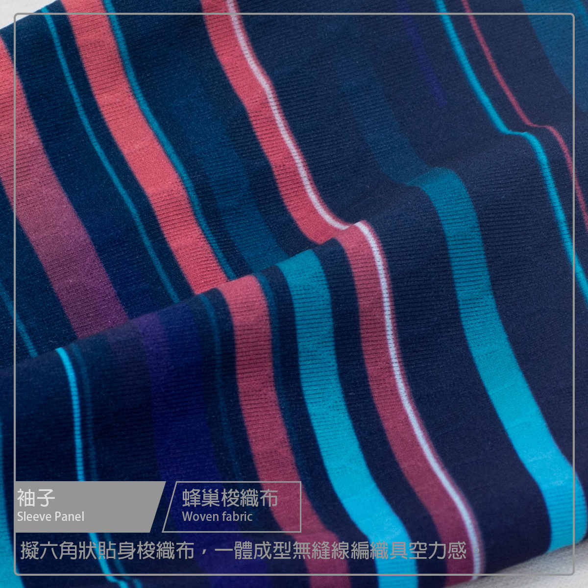 ● 袖子使用六角蜂巢梭織布,空力一體成型設計