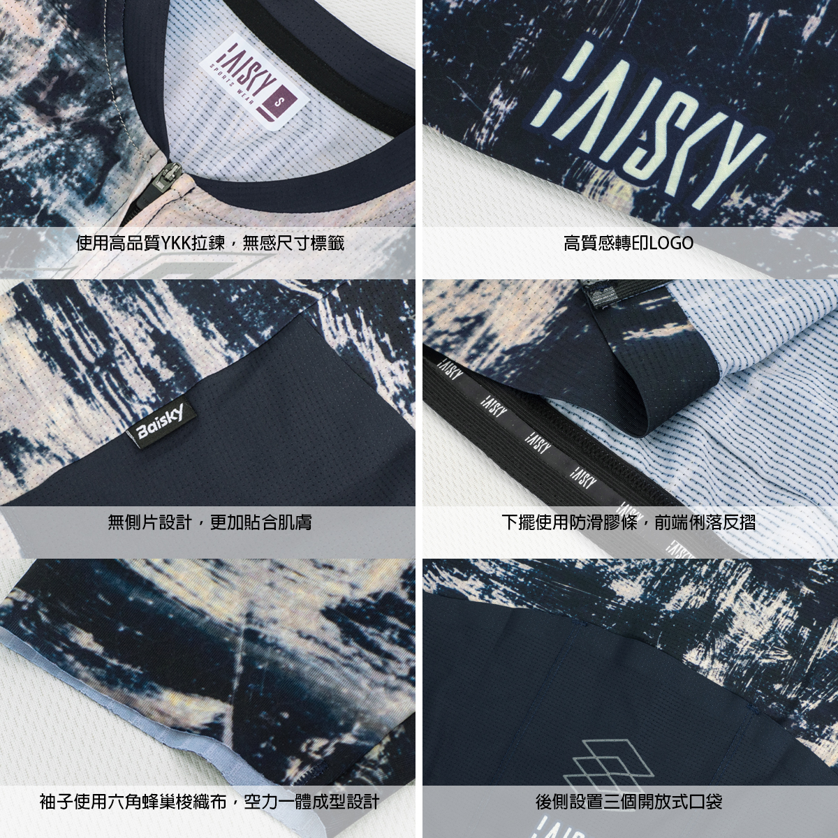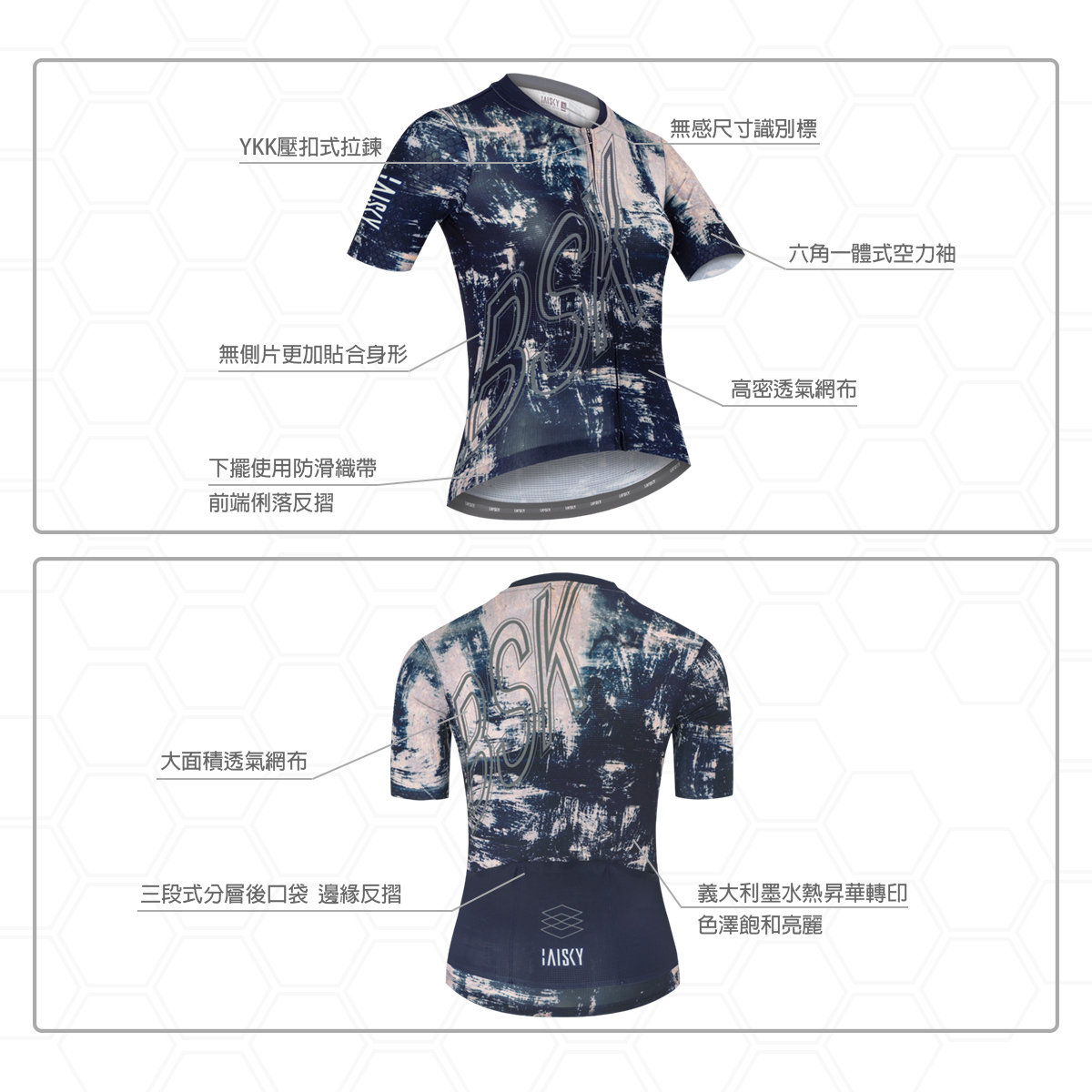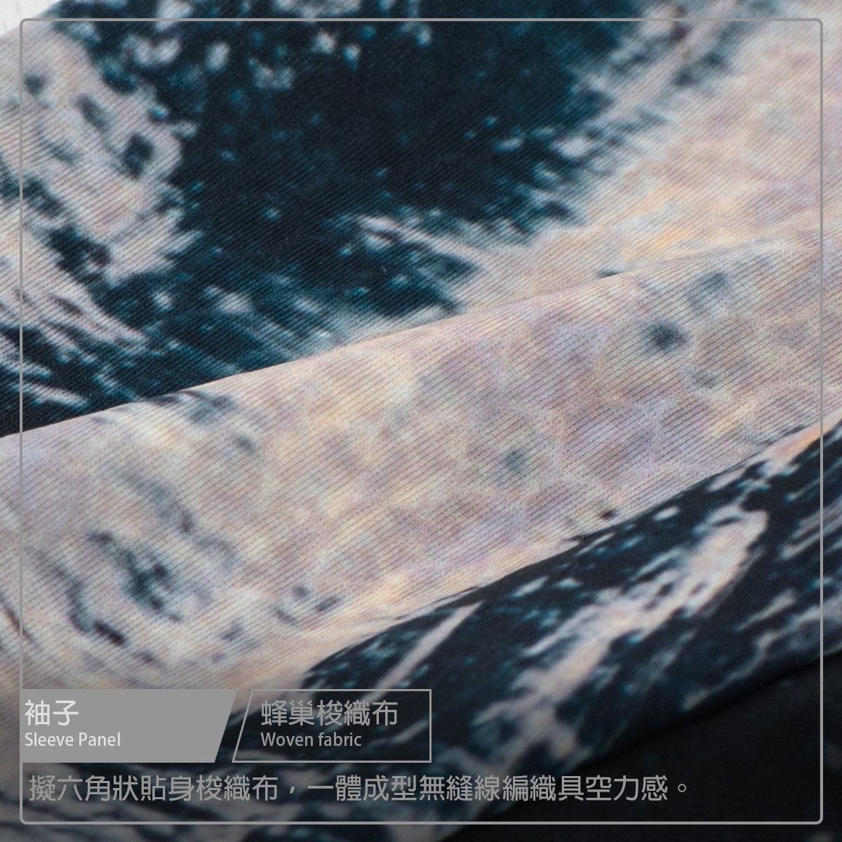 ● 袖子使用六角蜂巢梭織布,空力一體成型設計