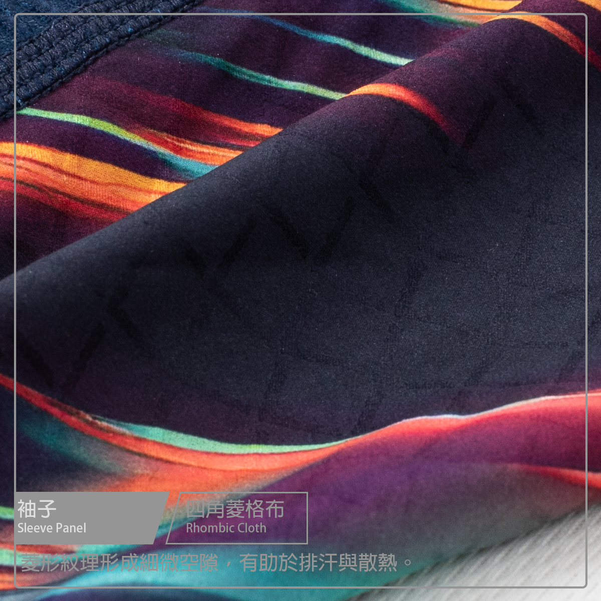 ● 袖子使用四角菱格布無縫收邊拼接透氣網布