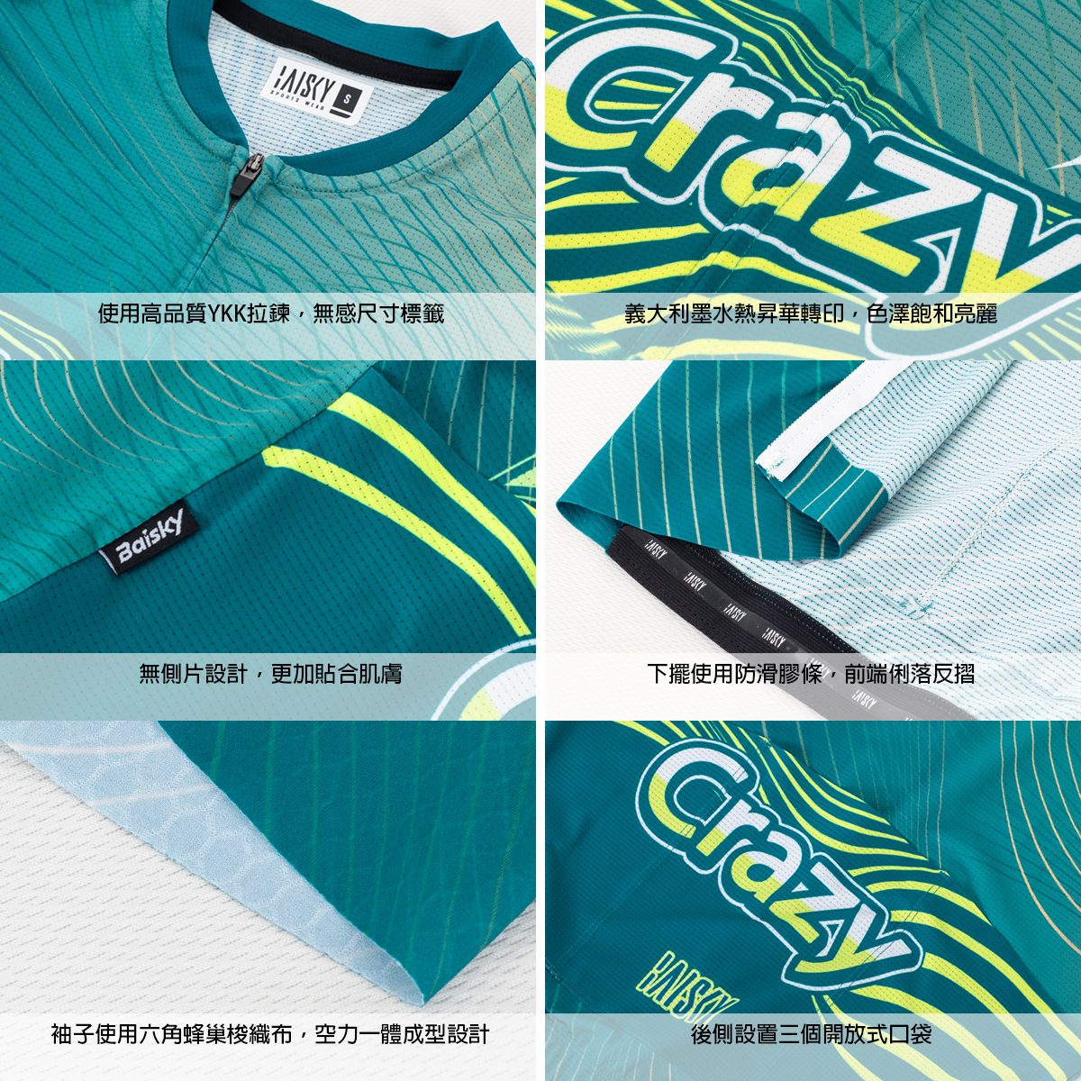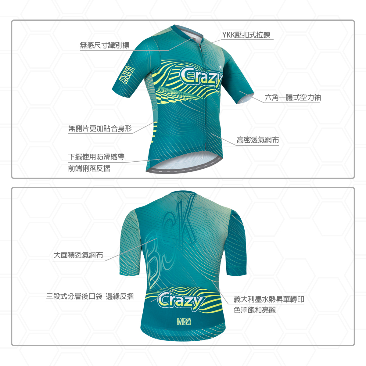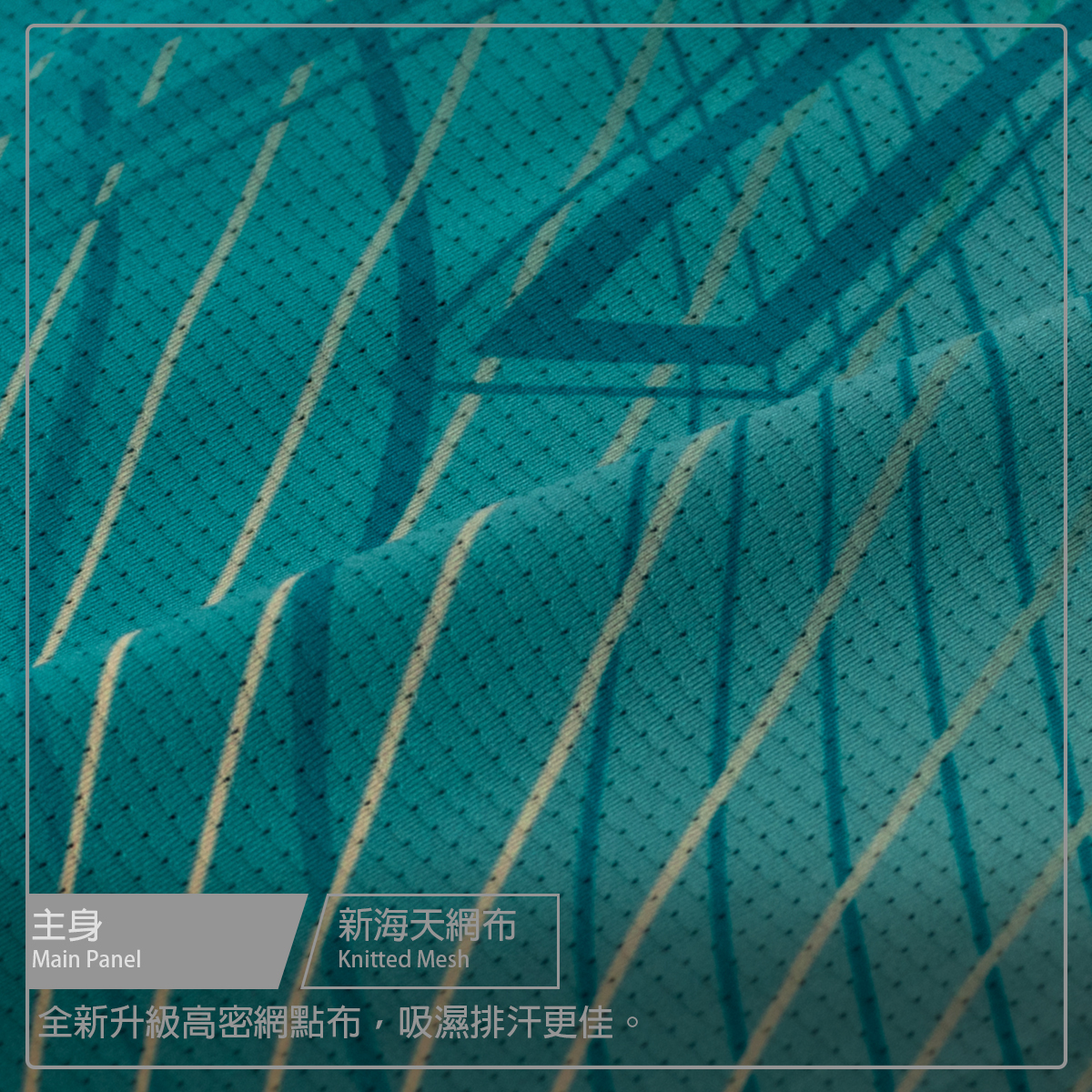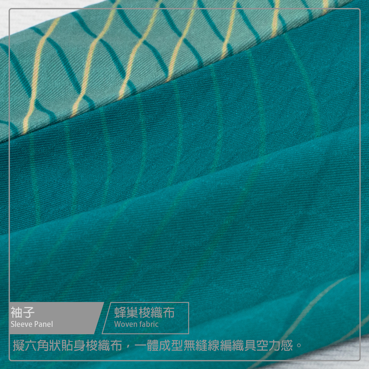● 袖子使用六角蜂巢梭織布,空力一體成型設計