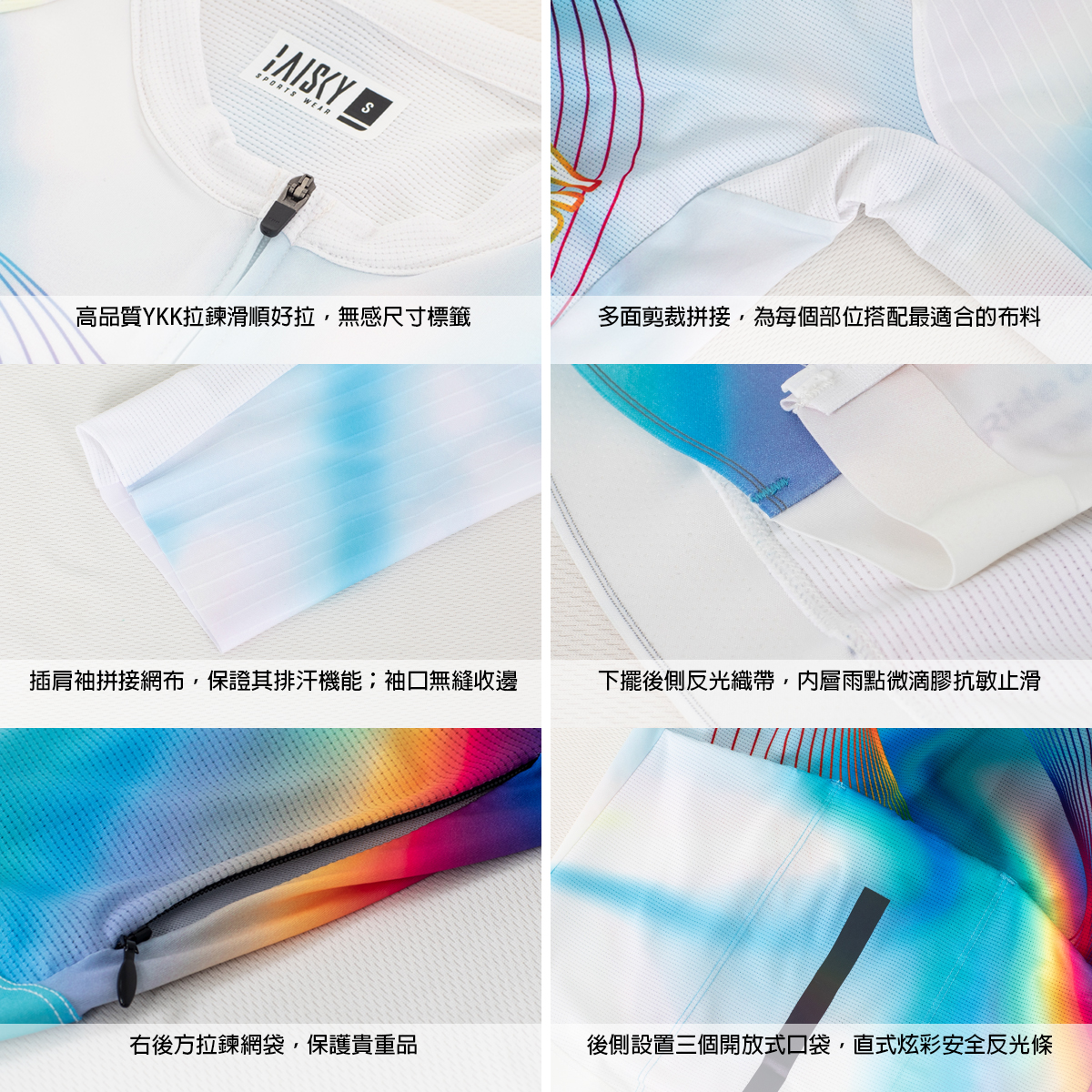 ● 後側設置三個開放式口袋,直式炫彩安全反光條
