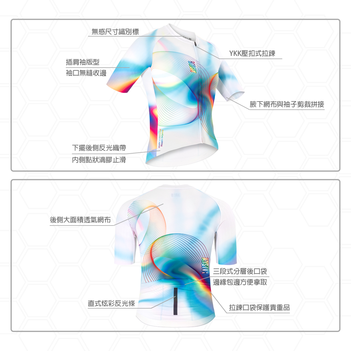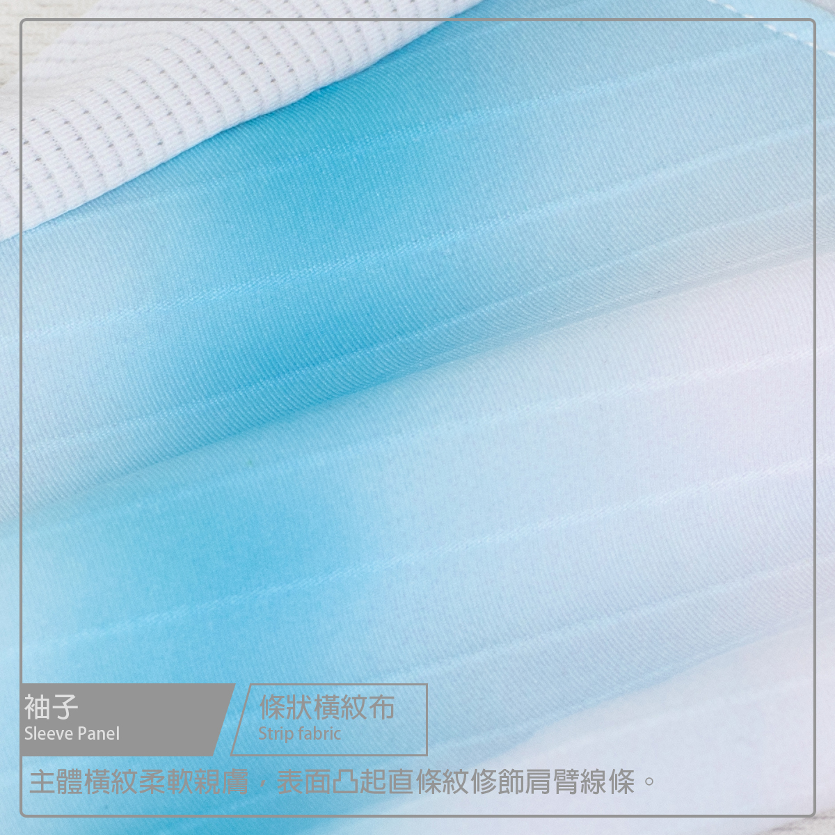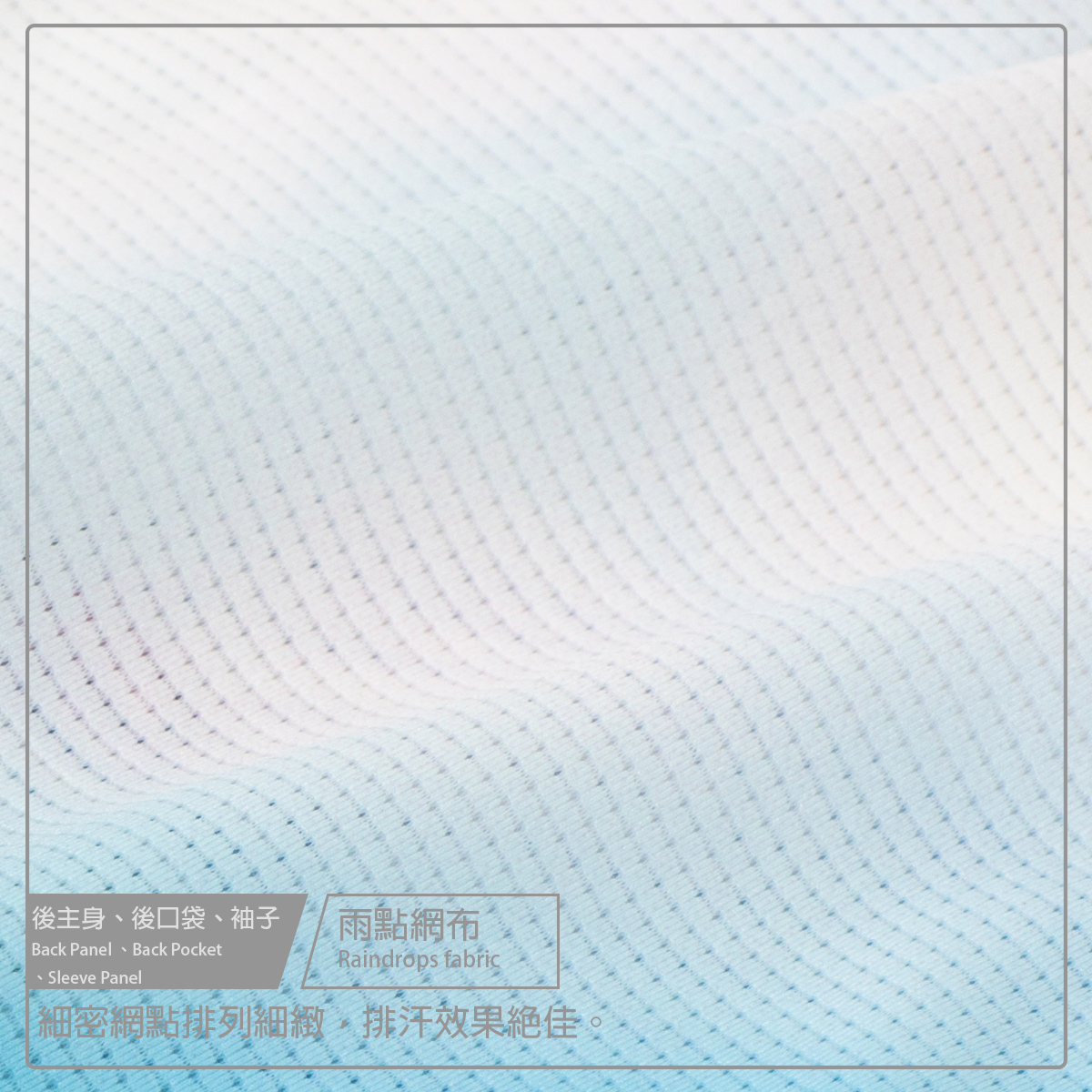 ● 插肩袖拼接網布,保證其排汗機能;袖口無縫收邊