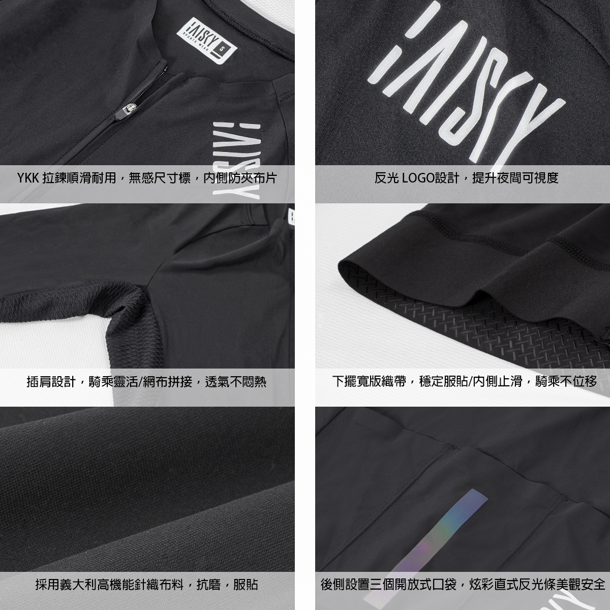 ● 插肩袖版型靈活修飾肩部身型,拼接網布騎乘不悶熱