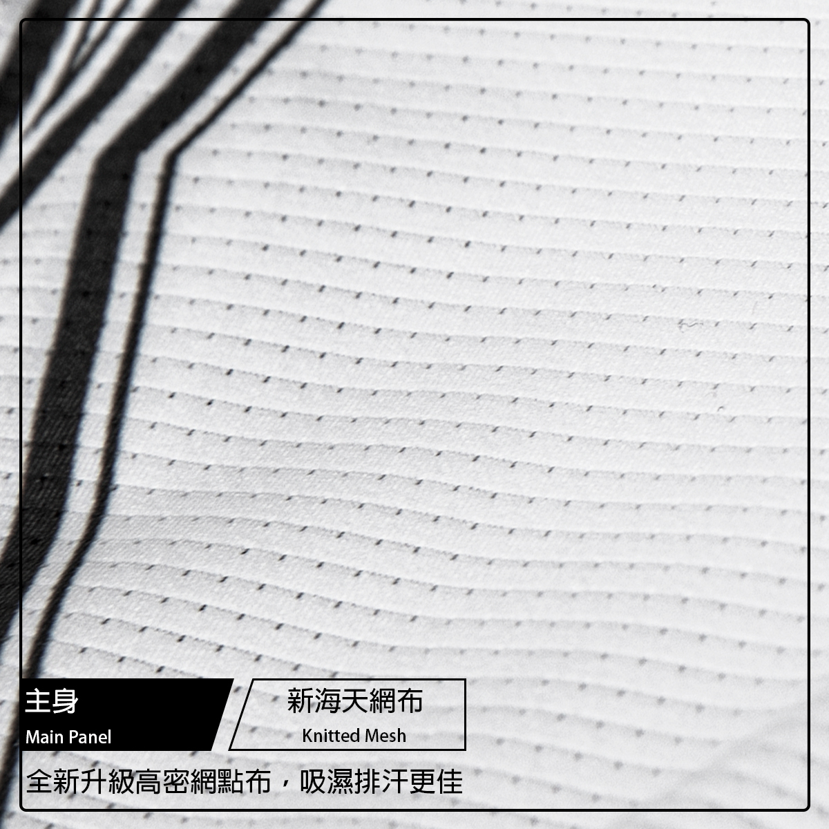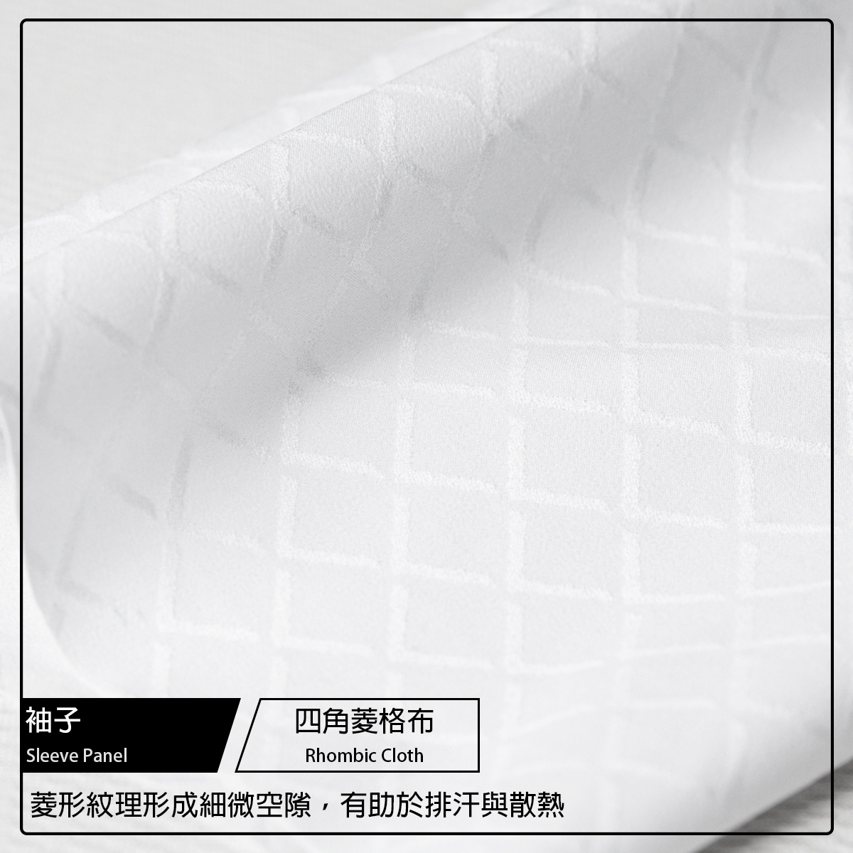 ● 袖子採用菱形網布極密透氣織紋,袖口無縫收邊完美貼合