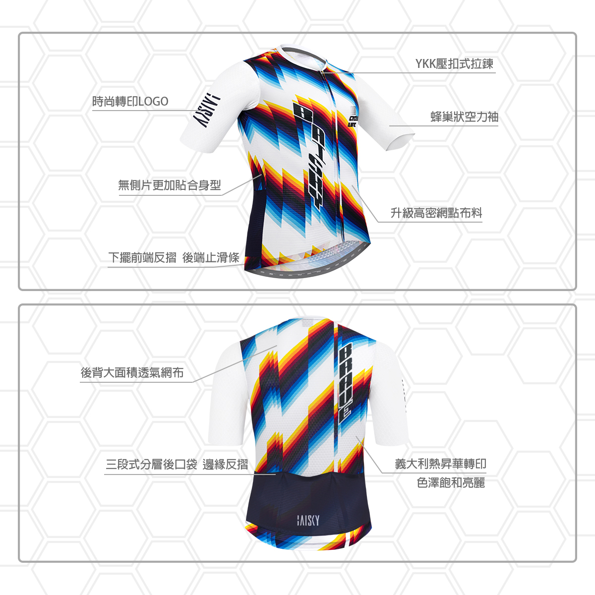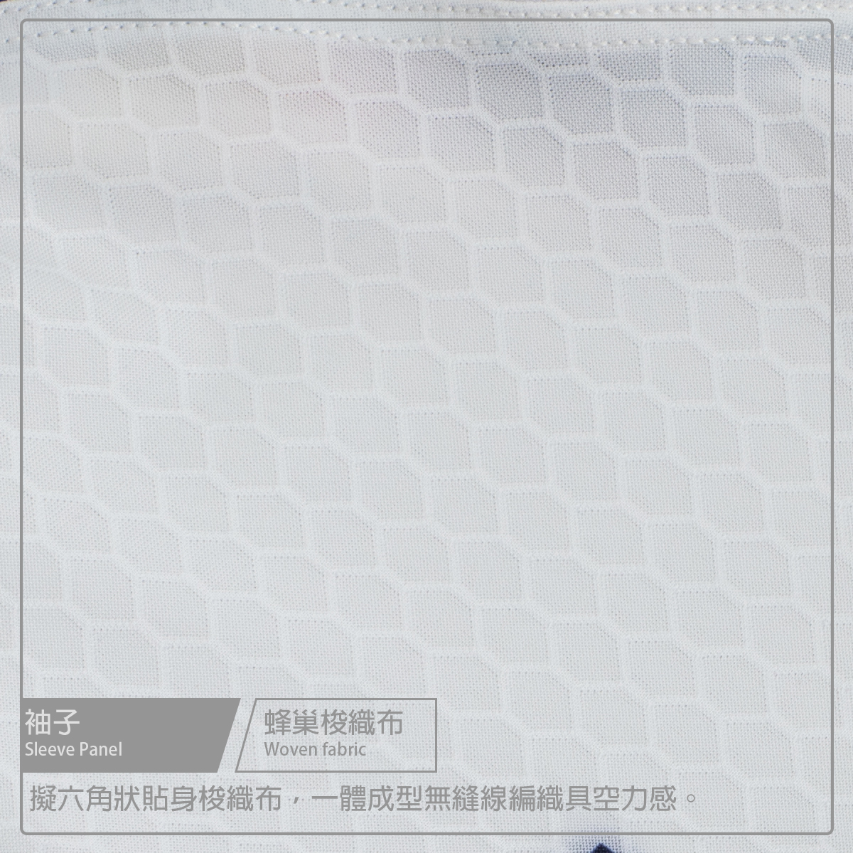 ● 袖子採用透氣蜂巢梭織布,空力一體成型設計